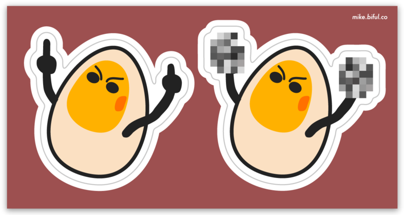 2 2-inch Stickers, one pixelated, and one with middle fingers flying